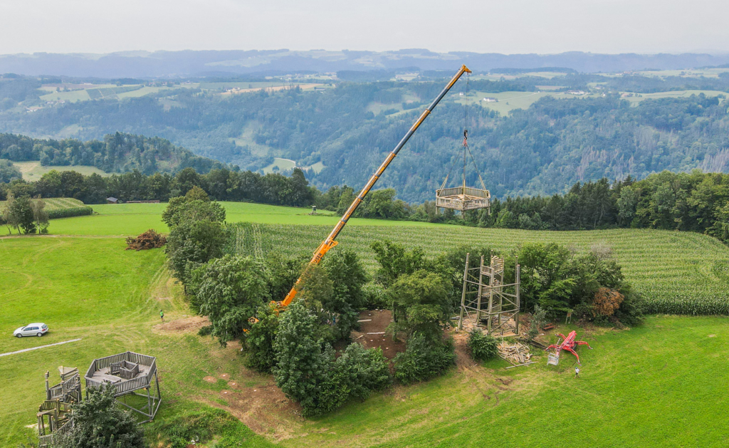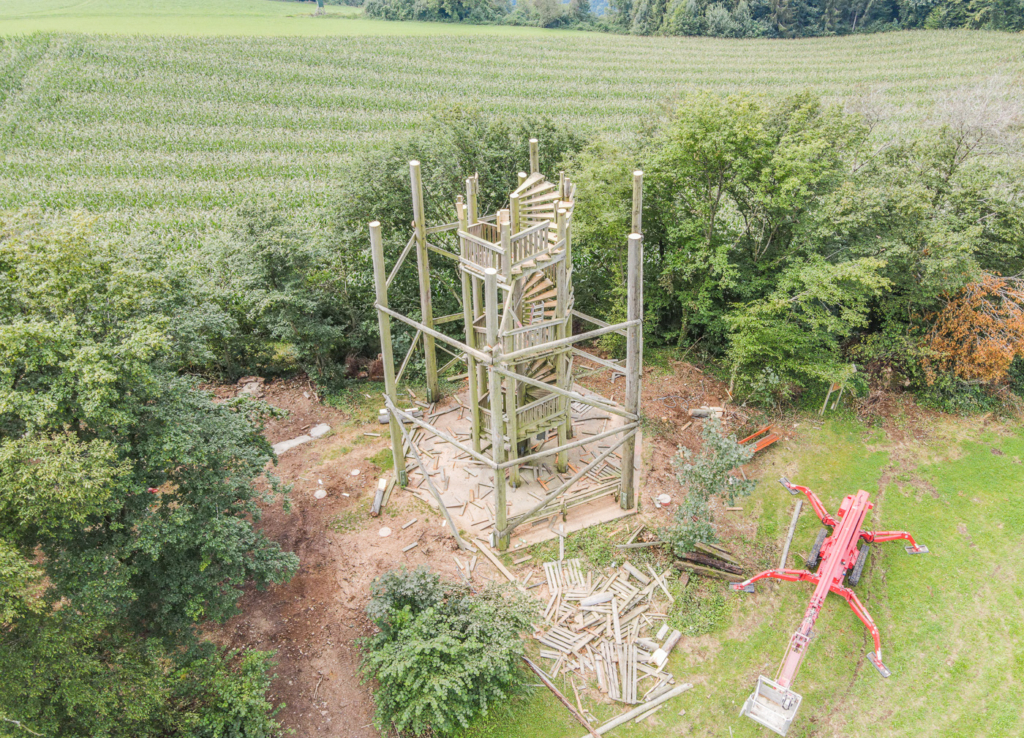 Nach dem Anschluss 1938 wurde auch auf dem höchsten Punkt des Kirchberger Burgstalls ein solcher „Trigonomischer Turm“ errichtet, der Vermessungszwecken diente.